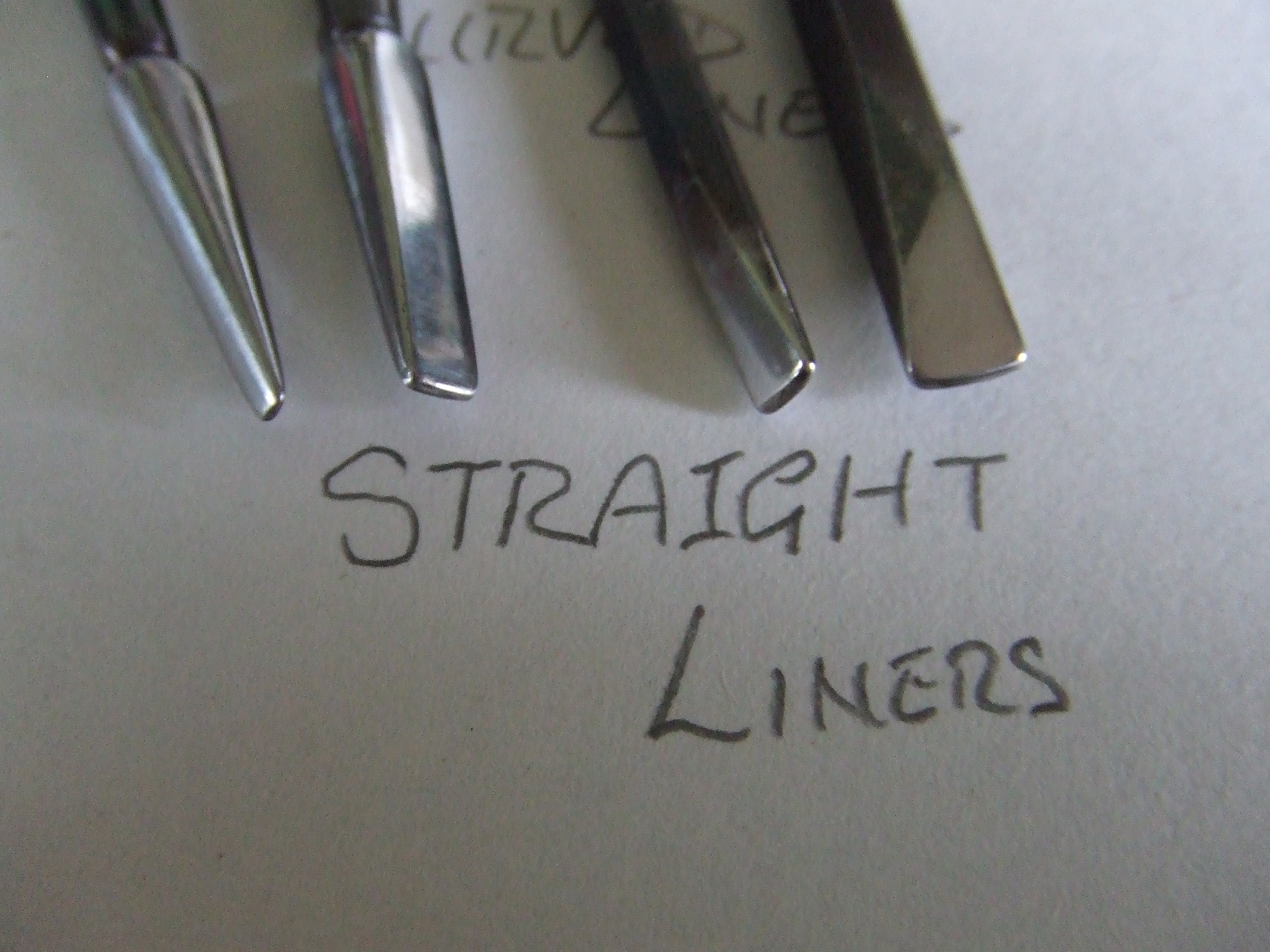 DSCF2841 Published March 10, 2013 at 2592 × 1944 in Chasing and repousse lining tools Traditional liners on the right, newer versions on the left