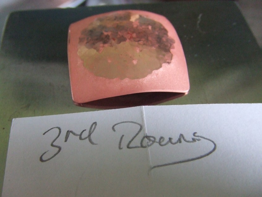 DSCF3053 Published May 12, 2013 at 2592 × 1944 in An approach to make curves or shallow bowls in metal The underside, you could planish, or be more careful than I have been and leave a pleasant hammer texture