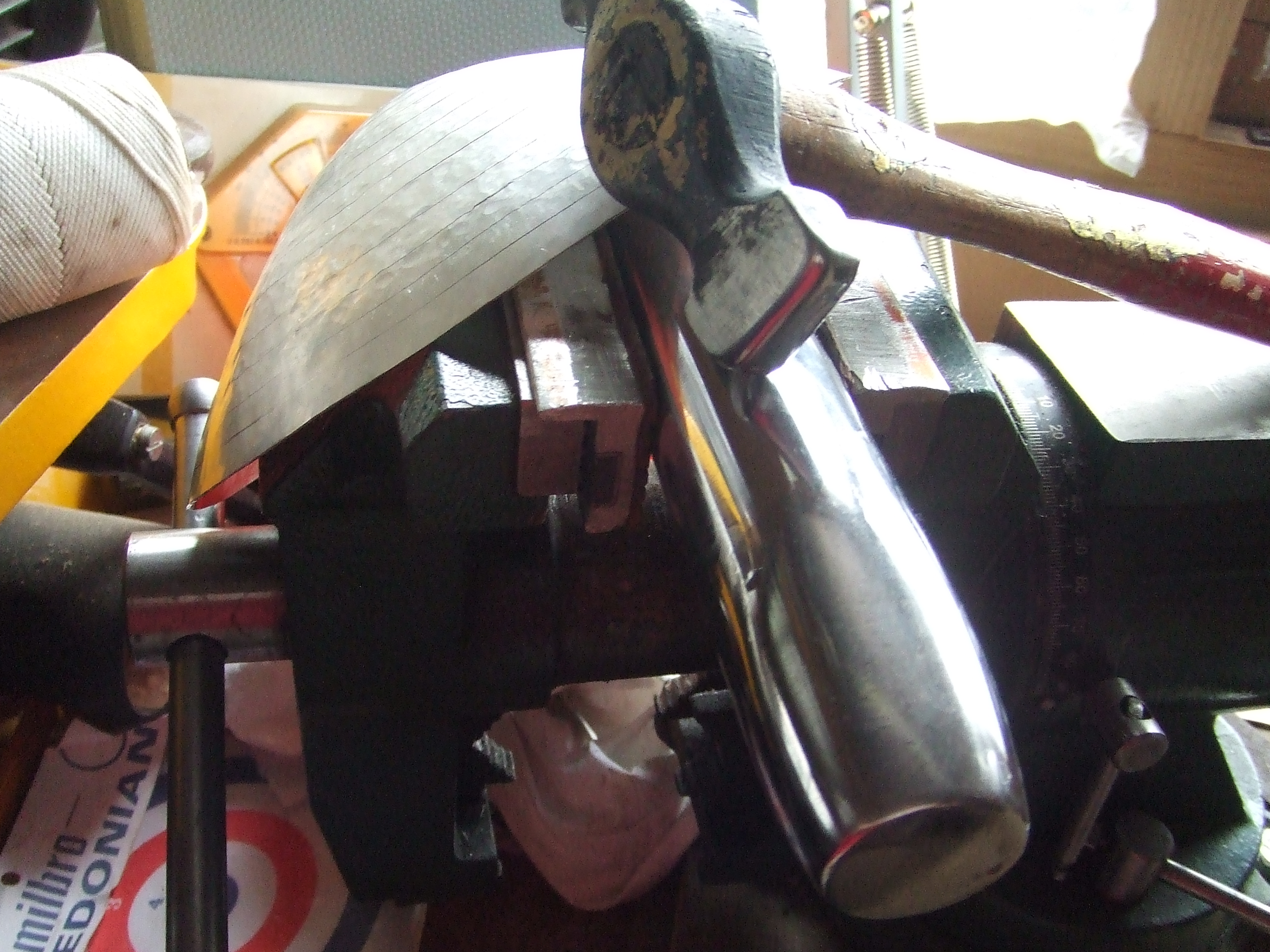 DSCF3063 Published July 2, 2013 at 2592 × 1944 in Sinking Britannia silver bowl, preparing for raising Scrap piece of steel bar. I have no idea what kind of steel, polishes well, hard enough to do the job, good enough eh!