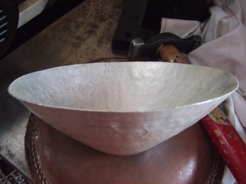 DSCF3066 Published July 22, 2013 at 2592 × 1944 in Raising Britannia silver bowl further along. Keep sides even.