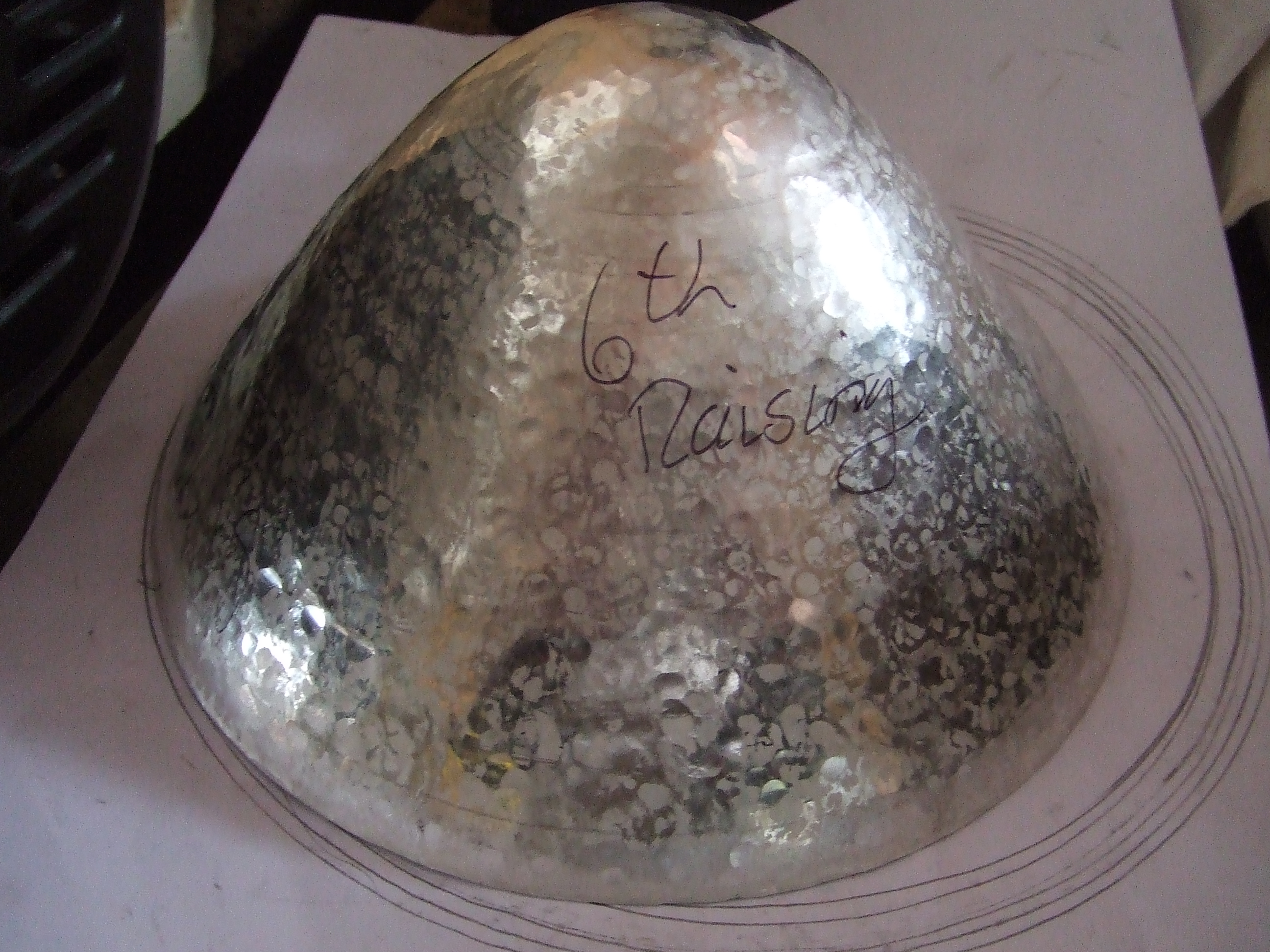 DSCF3071 Published July 22, 2013 at 2592 × 1944 in Raising Britannia silver bowl further along. 6th raising outline on paper to see progression.