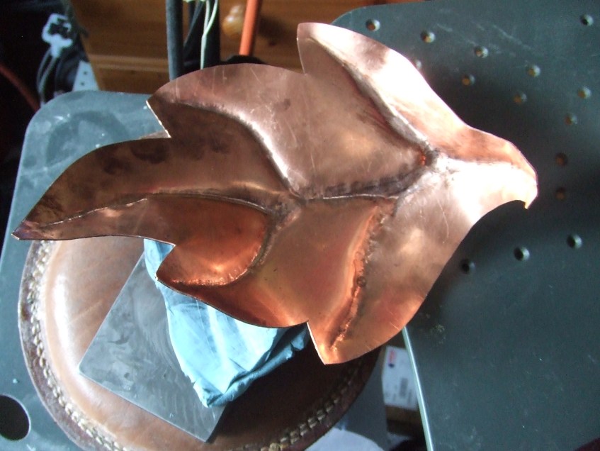 DSCF3309 Published December 6, 2013 at 2592 × 1944 in Repousse´ and chased flame patinated copper sunk leaf bowl First round