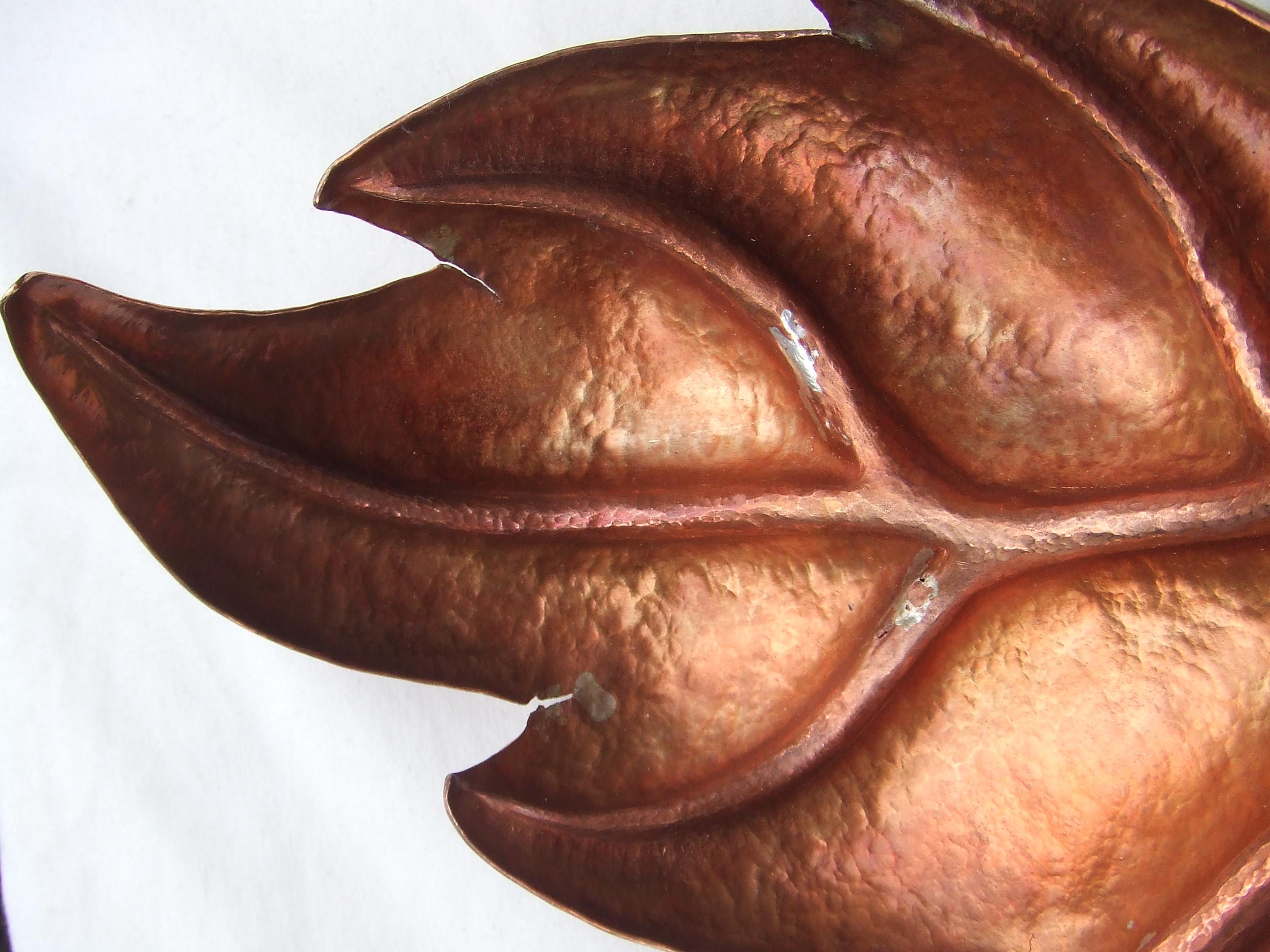 DSCF3331 Published December 6, 2013 at 2592 × 1944 in Repousse´ and chased flame patinated copper sunk leaf bowl this is what happens when you ‘rush’ ;/ see text