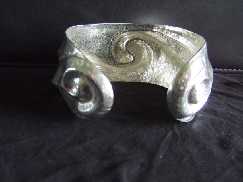DSCF1682 Published March 5, 2013 at 2592 × 1944 in Examples showing the chasing and repousse process using some of my work From the inside the ‘negative’ equal and opposite swirl pattern made by initially pushing from beneath Like Loading...