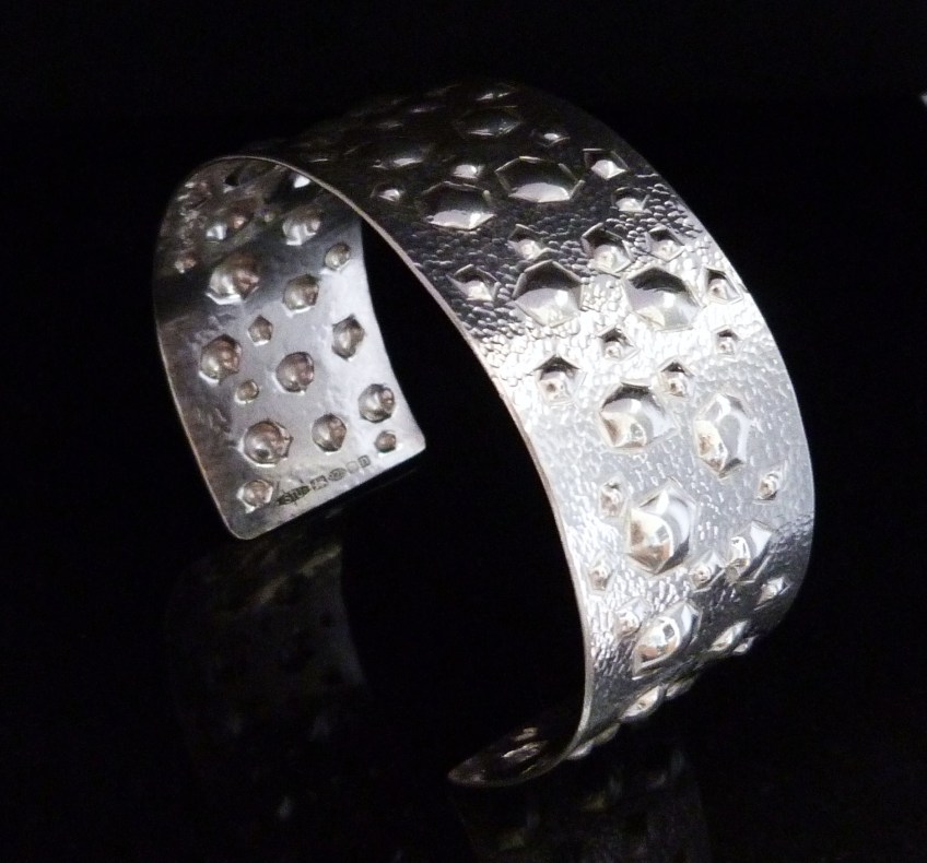 P1040519 Published March 5, 2013 at 1875 × 1748 in Examples showing the chasing and repousse process using some of my work Planished around the domes to depth some depth Like Loading...