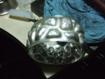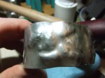 Staring to define the shape coming along nicely now. Fractious as the metal is stretching to, ‘do I dare go any further’ stage. Look at the inside and the softness of the boundaries. See text for explanation.