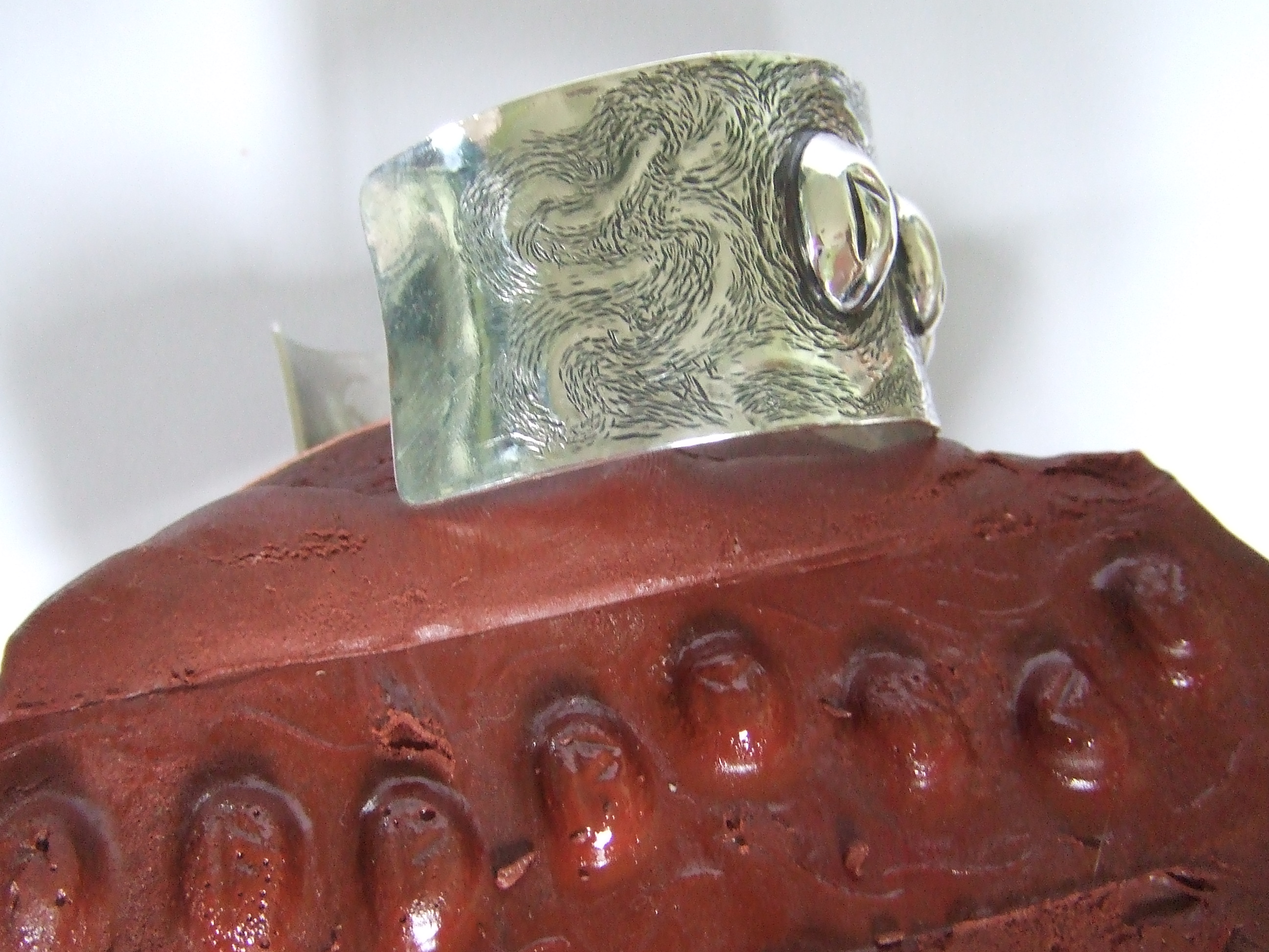 Chasing and repousse´bowl, new German red pitch used for completing sterling silver ‘Lawrence cuff’