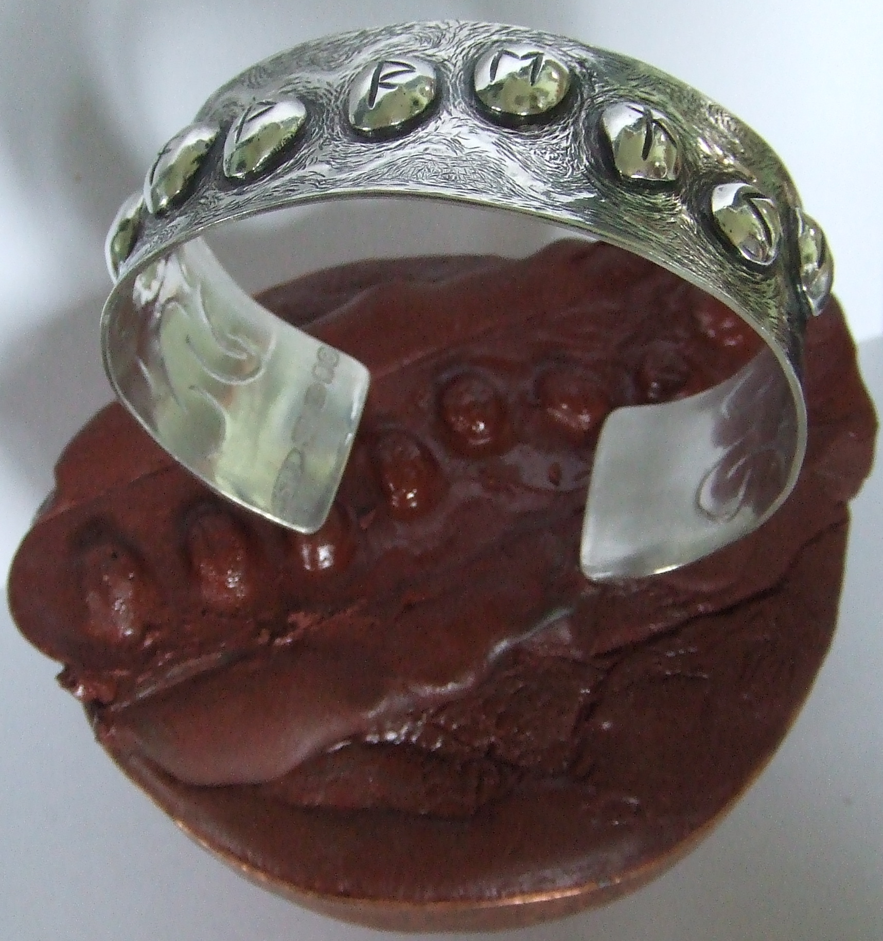Because of the hight required for the ‘runes’, also the definition/separation from the background I wanted to achieve; you can clearly see the material ‘gathered’ from the surrounding ares of each stone to push more silver where thinning will inevitably occur.