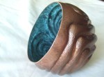 I’m almost at the end of my third and final year of my degree course. Truro College runs a yearly show to exhibit all students work in the arts. My copper paternated chased and repousse bowl is finally finished. I would like to take the opportunity to, both, introduce you to a very dear friend and awesome metal artist, publicly thanking her for all her help in the final finishing of this bowl.