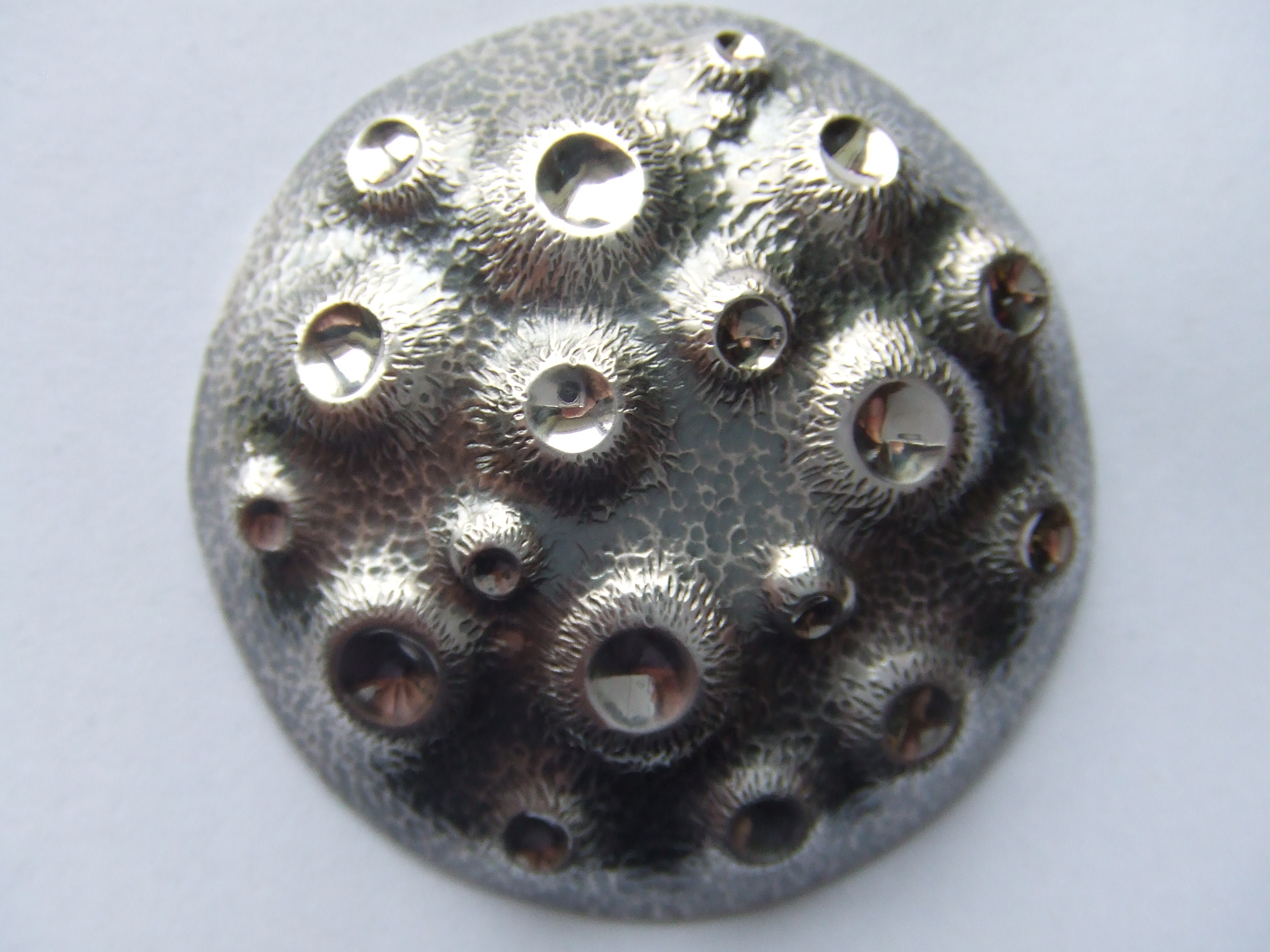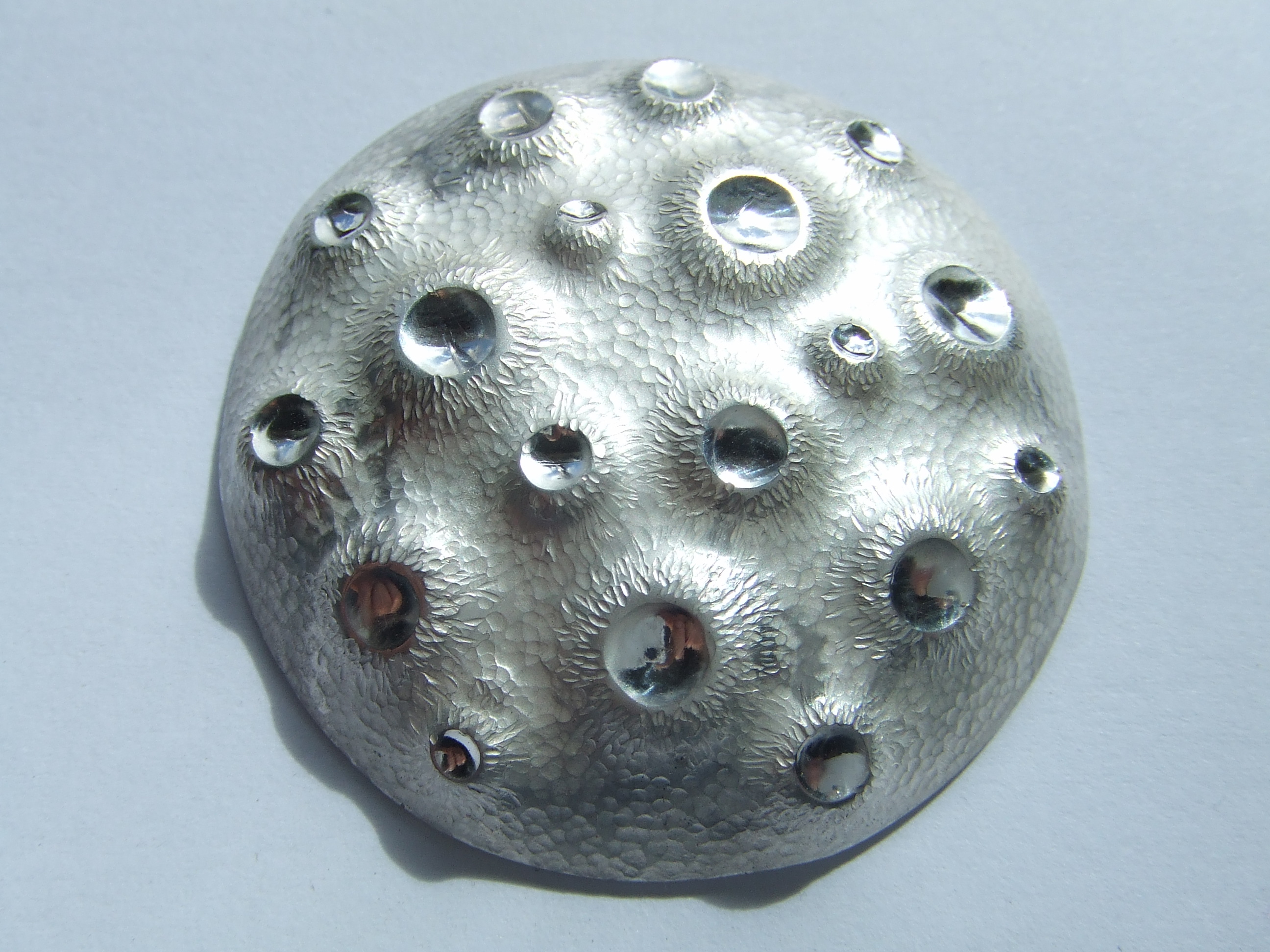 The copper model was one of many, actually this is one of two rounded models, the other being a lesson :/ (hideous). Along with this were many flat copper experiments to test punched that I made to try to replicate the effects. I have mentioned this before but it pays to repeat. Working in thin gage copper, approximately 0.6-0.7mm thick is very different and far easier than the 0.9mm Stirling Silver sheet used here. The silver is very much harder to move and requires more annealing stages to obtain similar results, don’t go too far too soon, give yourself more time than you would in copper.