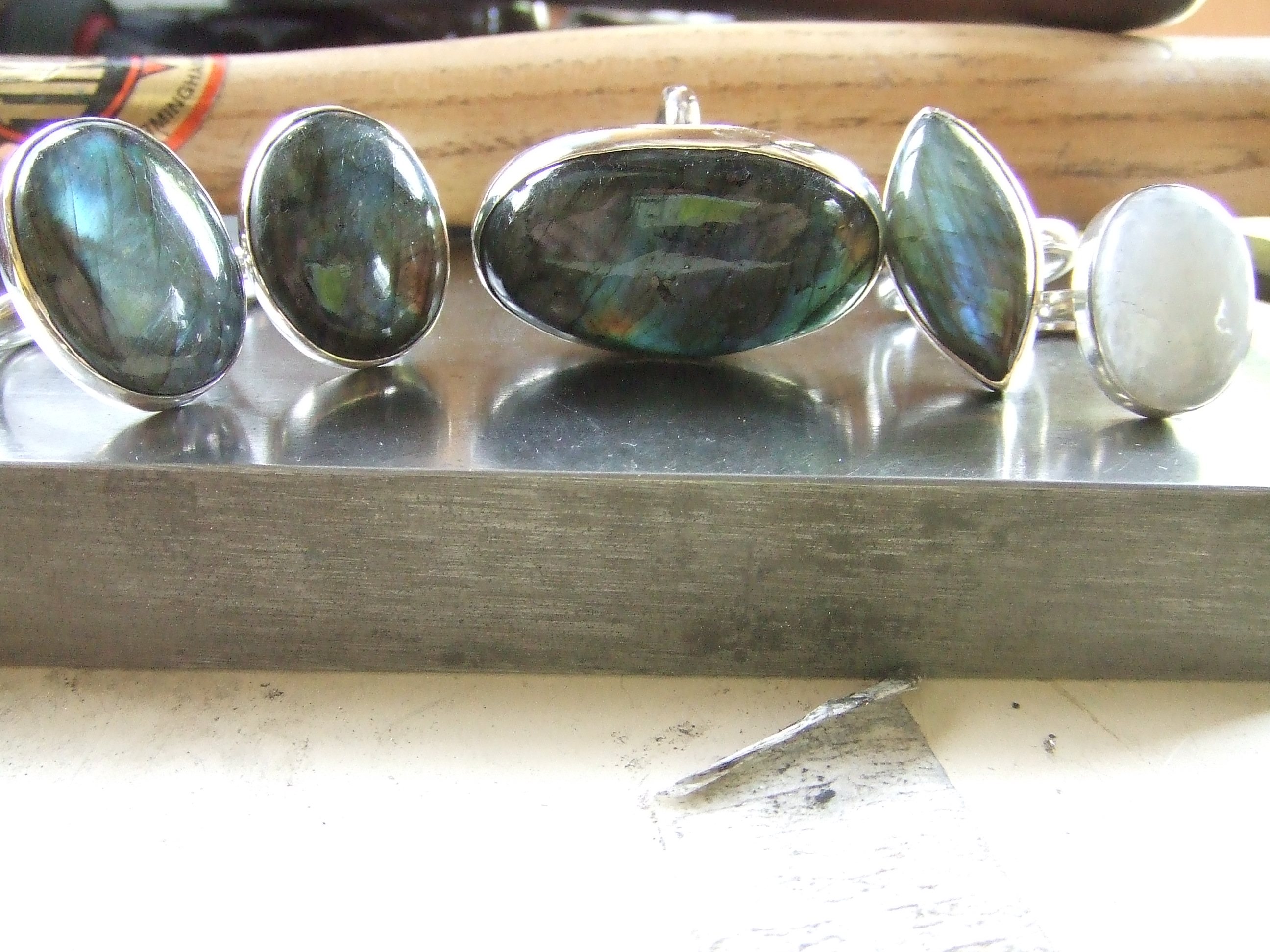 The moonstone was mine to start with. Paul and Clair at the jewellery workshop Porthleven kindly gave me all the others to play with