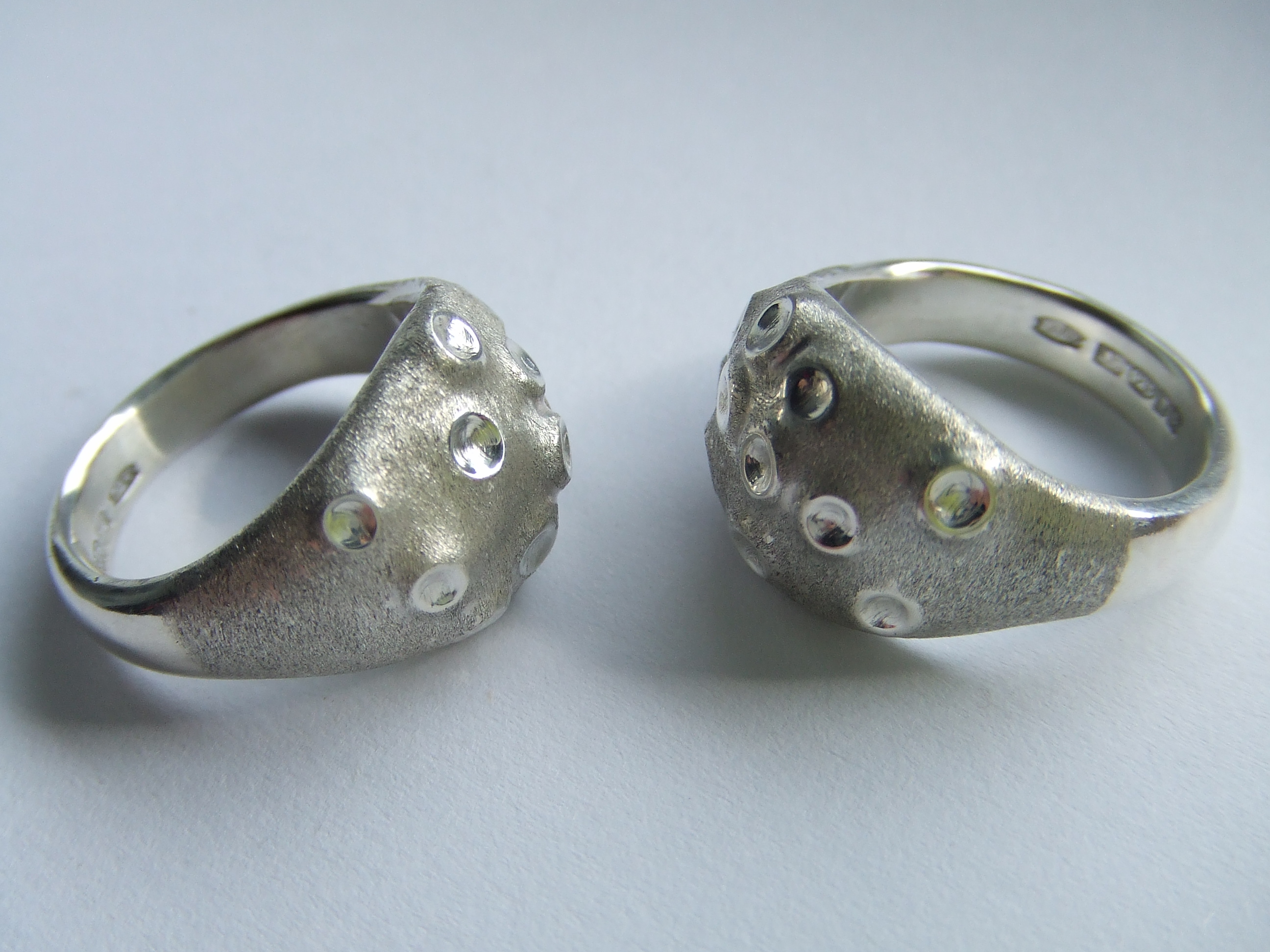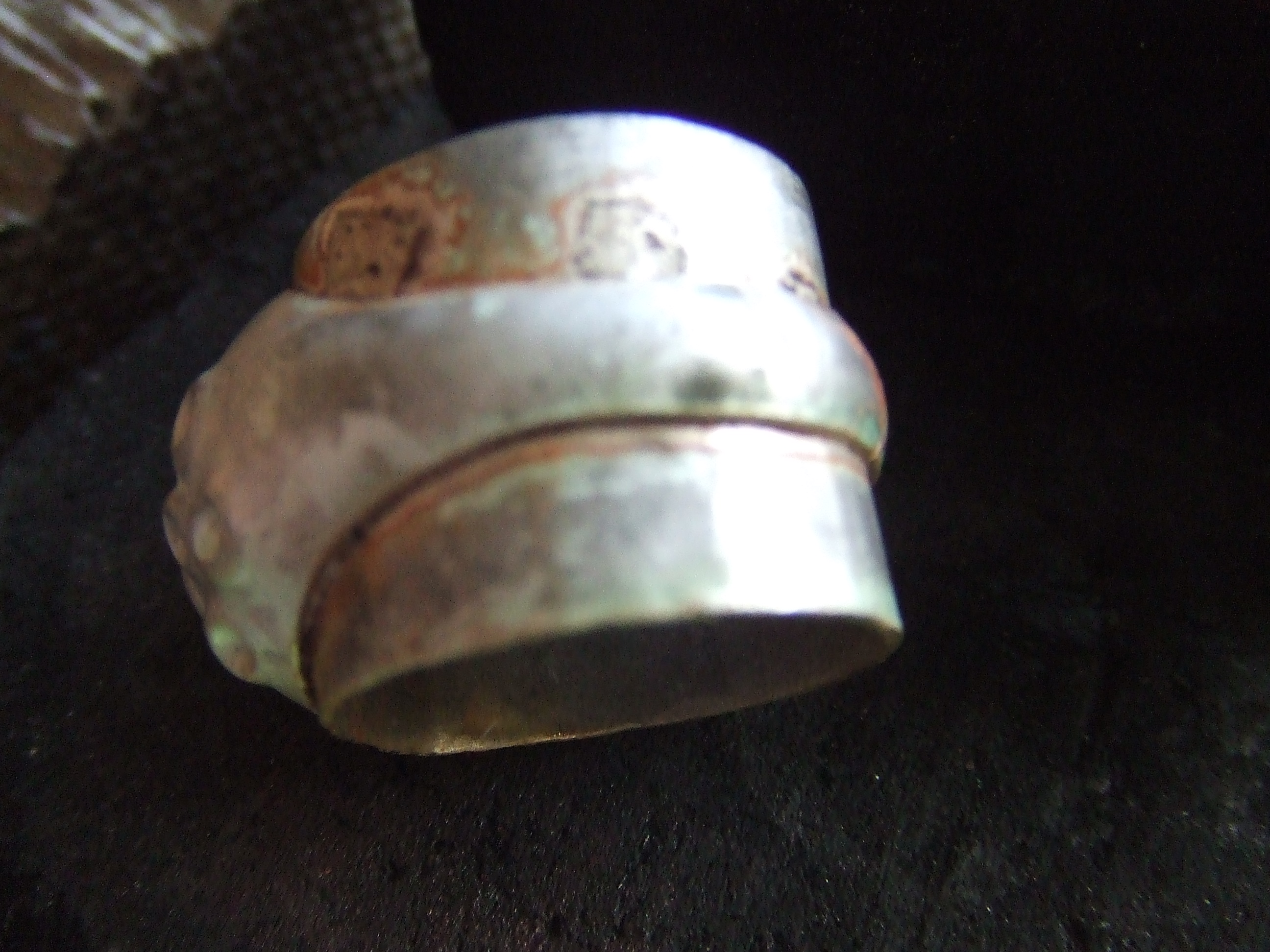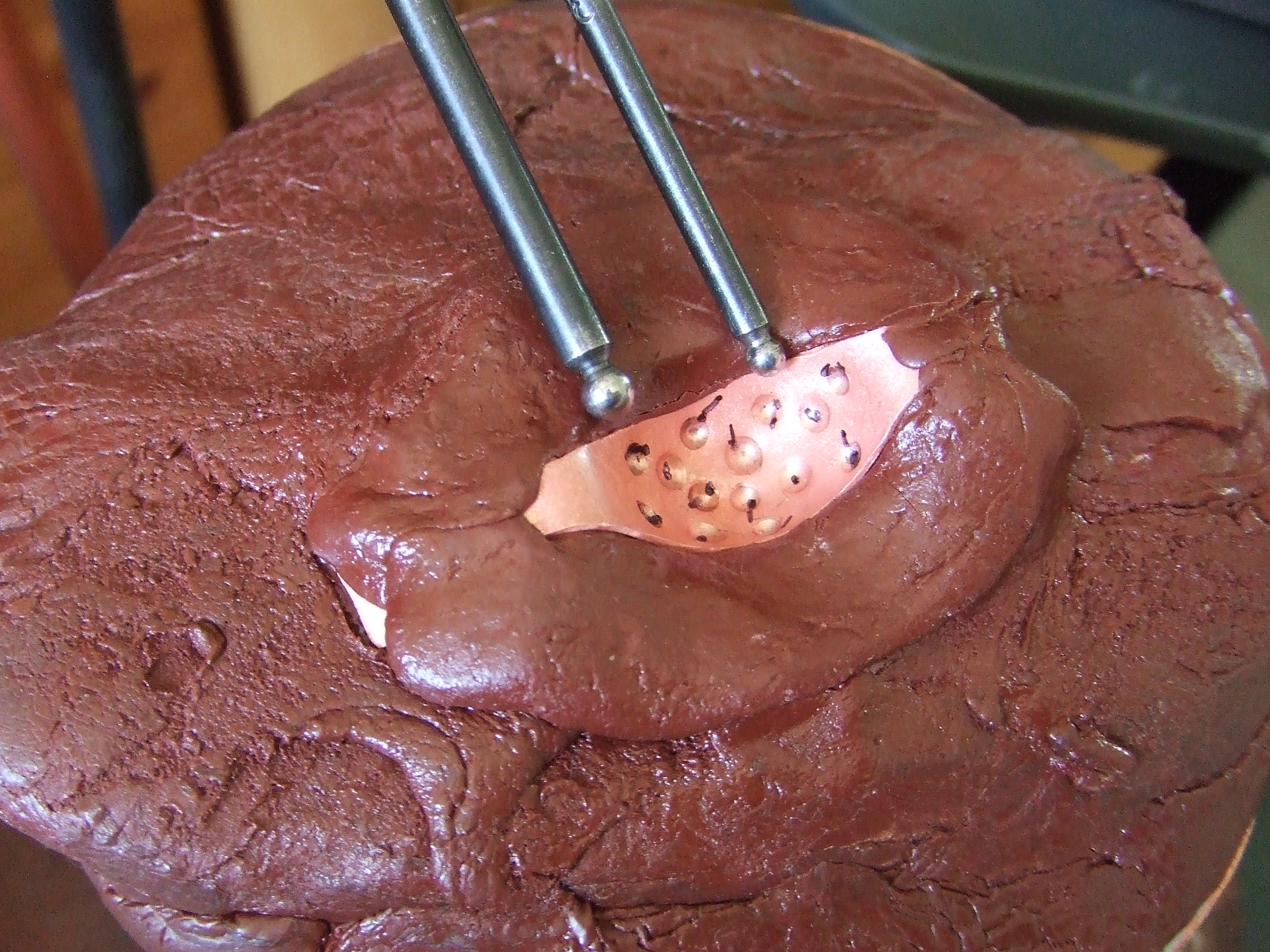 These ‘pliers’ were purchased on Ebay a while ago after I came across them in one of my second hand tool hunts. They are old pig ringing pliers. Used to attach nose rings into pigs. As you see, you have the option of two sizes. I was not strong enough to form them with my hands, resting one handle on a rubber block and tapping the other closed with a leather mallet. Fantastic and painless result, as shown. Ring forming pliers are nothing new, look on any jewellery supply site. However these are quite a bit larger than the ‘proper’ jobs. Also, who wants pig pliers, cost conscious farmers thats who. Not ‘oh its for working precious metal therefore its and arm and a leg please’ of the tool suppliers. Look up a set for yourself. These are aluminium, thats a bonus as they will be far less likely to mark your material, a danger with steel ones. Also, should you so wish, you could mirror polish them and use them for making production runs of perfect, unmarked larger jump rings ready for soldering.