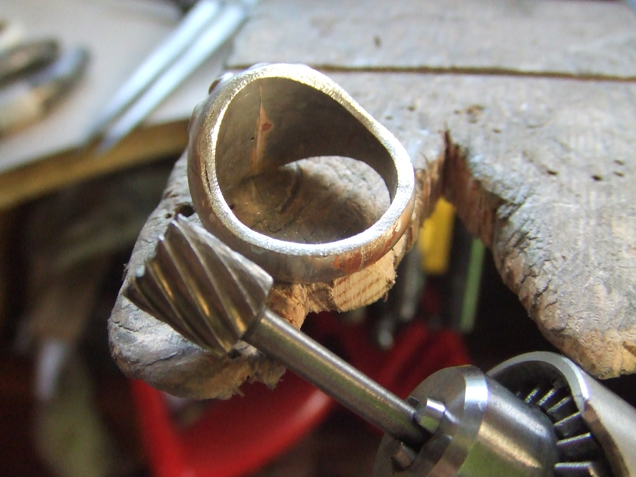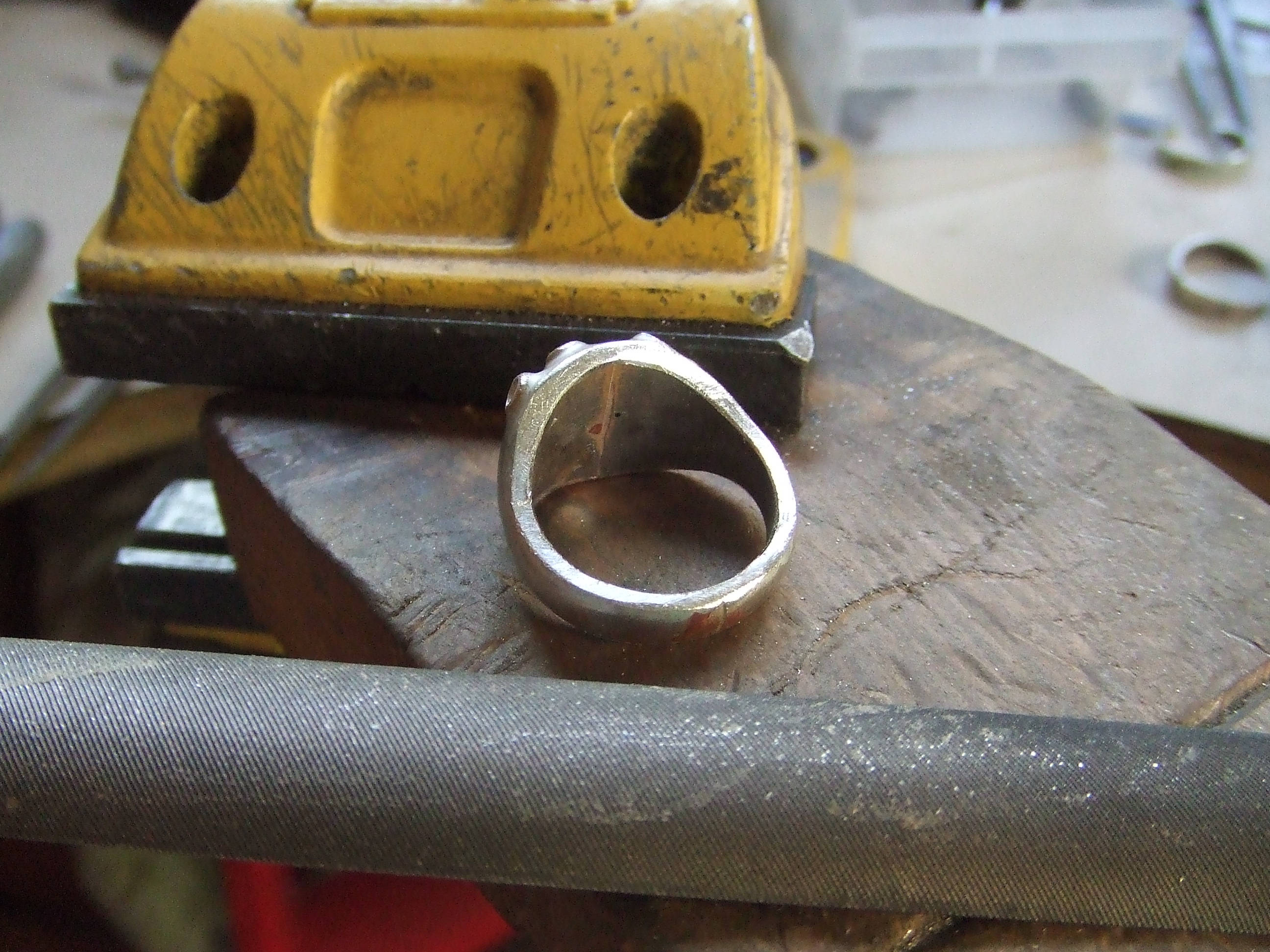 I have been asked to make a necklace with forged to undulating round/ovalish shapes. The rub is, the chap wants it to be really weighty and asked for 5mm wire to start!!! I managed to talk him out of 6mm which was what he contemplated. These links are to be forged once turned into rings, soldered and shaped. Have you tried to make small rings with 5mm sterling silver wire! Man alive, it is tough to work into bends that small, getting the ends to meet for soldering is also a nightmare as it is soooo hard. The other conspiring difficulty is, the 83mm lengths to start with are a bugger to hold whilst you try to form them around a mandrel. The vibration is enough to rattle a chaps fillings, also keeping it still, trying not to hammer fingers, preventing it taking an aerial journey across the workshop was also challenging.